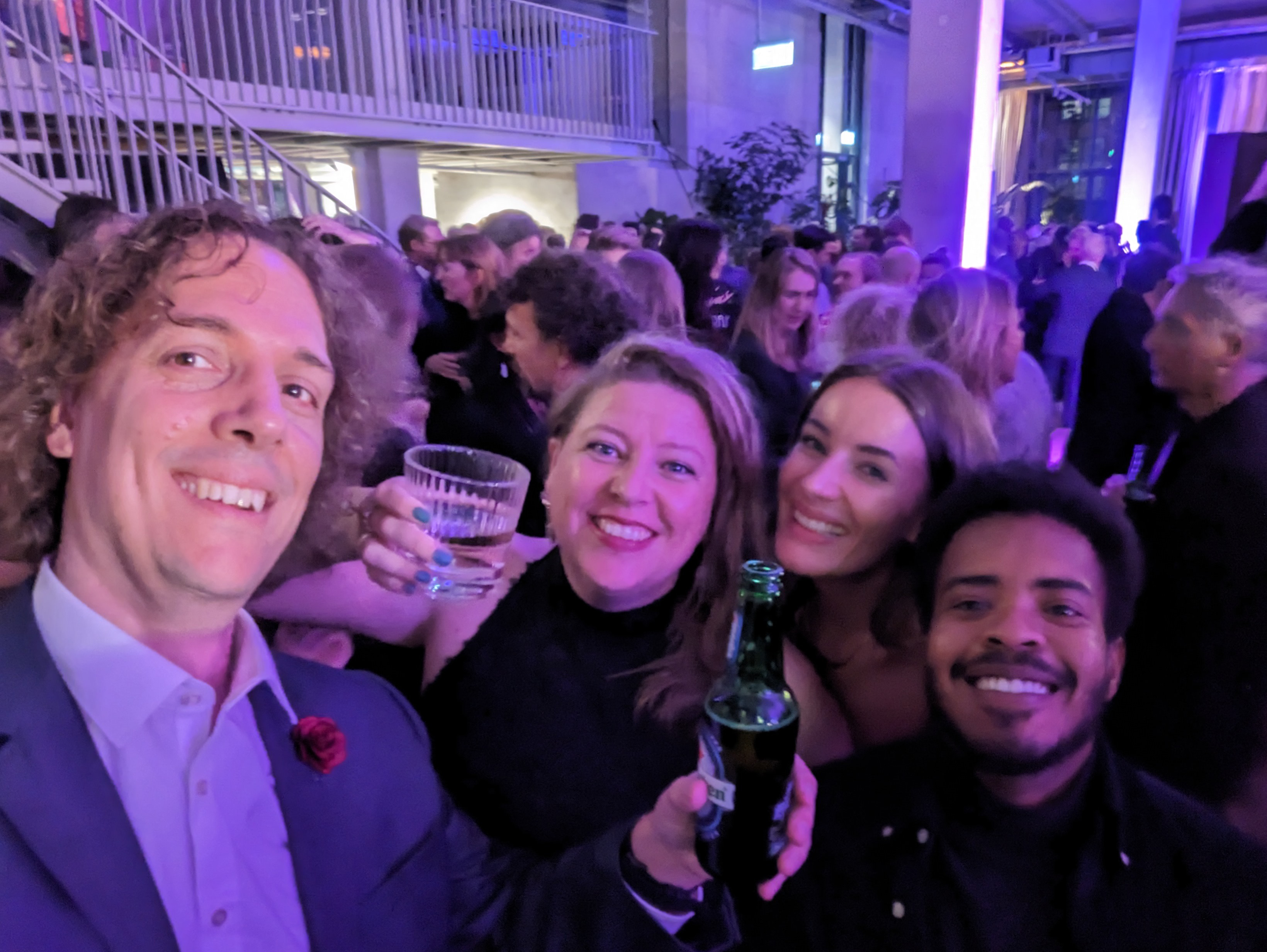 Court (de grote ster van de campagne) en Daan Ferf Jentink mochten op uitnodiging van TBWA\NEBOKO namens TYD mee naar de award-show, die werd gehouden in een prachtige zaal van Theater Amsterdam. Achter het podium stond een enorm halfrond beeldscherm waarop alle inzendingen van de finalisten werden getoond. Heel bijzonder om de campagne zo groot te zien.